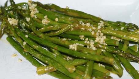 2.Heat up skillet on medium heat and add the melted butter. Sauté the garlic until slightly browned before adding the asparagus. Toss with a spatula to combine well with the garlic.