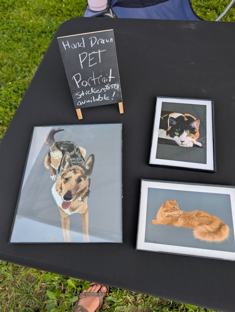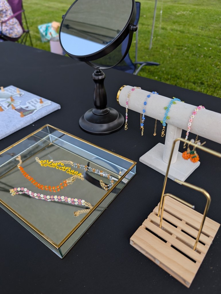 Hello, my name is Shiloh, and I sell glass bead jewelry with gold plated hooks and clasps, pressed flowers service, as well as pet portraits that I illustrate personally!